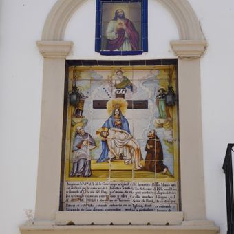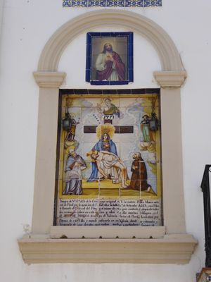 Ceramic panel of Virgen al pie de la Cruz in calle Torreta