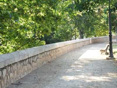 Turia river parapet between Sant Josep and Exposició bridges, listed monument in Valencia, Spain