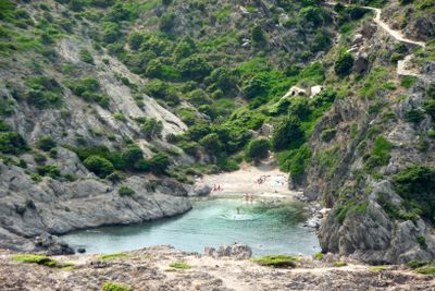 This secluded beach represents the naturist traditions of the Costa Brava region, where clothing-optional areas integrate with Mediterranean coastal life.