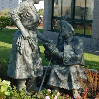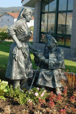 Dando de comer al peregrino, sculptural group in Pontevedra (Spain)