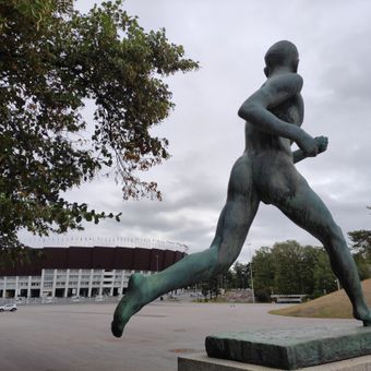 Paavo Nurmi statue, Bronze statue at Olympic Stadium in Helsinki, Finland.