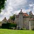 Château de Villemonteix is a castle with a rectangular main building and tall round towers at the corners of the west facade, featuring a square staircase tower. The estate contains twelve rooms spread across four levels that display the medieval construction style.