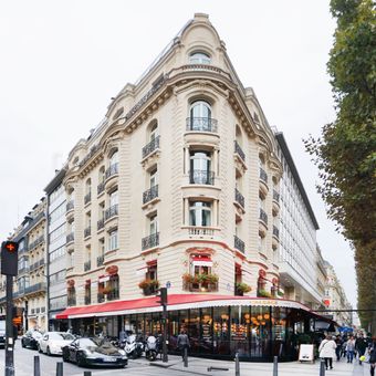 The Maison de l'Alsace occupies a 2,200-square-meter Haussmannian building with six floors, featuring a business center and restaurant at 39 Avenue des Champs-Élysées.