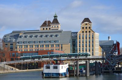 Pont du canal de l'Ourcq, Tram bridge in northeastern Paris, France.