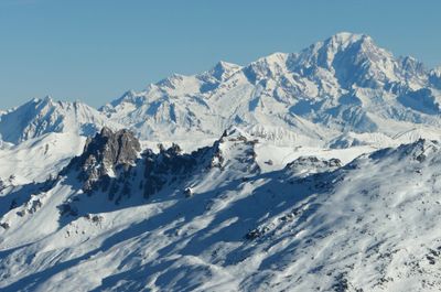 The Sommet de la Saulire reaches an elevation of 2,738 meters within the Massif de la Vanoise range of the French Alps between Courchevel and Meribel.
