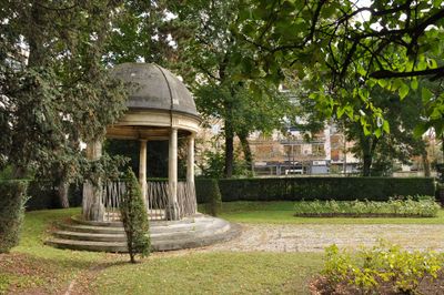 Parc de la Folie Saint-James is a listed heritage park in Neuilly-sur-Seine near Paris. The grounds feature mature trees, winding paths, and remnants of period structures that shape the overall landscape.