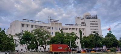 The Chennai Port Trust Centenary Building stands as a 12-story structure with a large radar dome installed on its rooftop for weather monitoring.