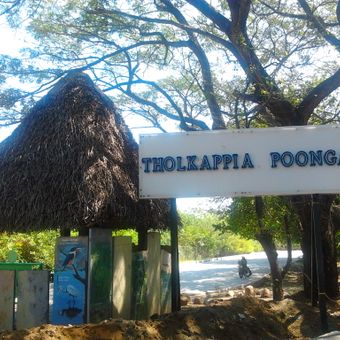Tholkappia Poonga is a 58-hectare urban park along the Adyar River, featuring mangroves, wetlands, and grasslands. The grounds host numerous native bird and plant species that visitors can observe from designated walking routes.