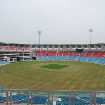 Ekana Cricket Stadium is a sports venue in Gomti Nagar Extension, Lucknow, India, with seating for 50,000 spectators. The ground features floodlights for night matches and multiple stands that wrap around the playing field.