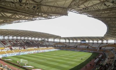 The stadium accommodates 30,655 spectators with a natural grass pitch measuring 105 by 68 meters and features an advanced roofing structure providing optimal shade coverage.