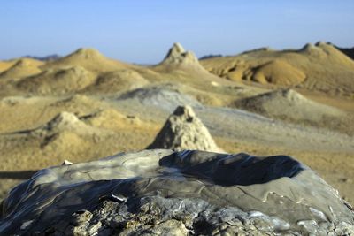 The Pirgel Mud Volcano contains eleven distinct craters, with seven active ones regularly releasing cold muddy water and bubbles every 15 to 600 seconds.