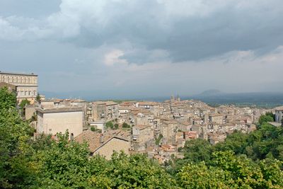 Caprarola is a town in the Province of Viterbo centered around Villa Farnese, a building with pentagonal shape and a circular interior courtyard. Extensive formal gardens surround the villa and shape the look of the entire area.