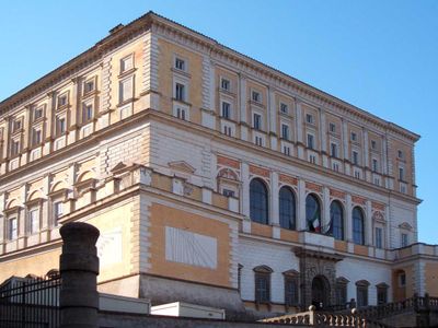 A cardinal planned a fortress in 1530, but the project paused when he became pope in 1534. Work resumed later, and the villa took decades to complete.