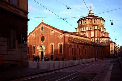 Santa Maria delle Grazie is a church in Milan built during the Renaissance, blending Gothic elements with Renaissance forms. The building features a Gothic choir with an octagonal dome above the altar area, while the nave maintains traditional Gothic proportions.