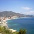 The town covers 8.02 square kilometers at an elevation of 7 meters, creating a concentrated urban area between the sea and the surrounding hills.