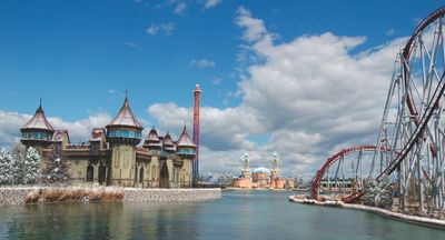 MagicLand features 38 attractions across 16,000 square meters of land, including roller coasters, water rides, and entertainment zones for different age groups.