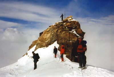 Climbers access the summit through the Lys Col route, passing Rifugio Città di Mantova and Rifugio Giovanni Gnifetti, with cable car service available from Punta Indren.