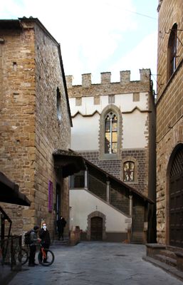 The palace is located in central Florence and is easily reached on foot, though it sits on a quieter street away from the main thoroughfares. The surrounding area is paved with cobblestones and has a rustic, medieval character that makes exploring this neighborhood pleasant.
