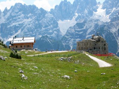 The refuge acts as a central point on multiple hiking circuits, connecting the Three Peaks area with the Fanes-Sennes-Prags National Parks through mountainous trails.