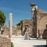 The excavated ruins reveal an extensive ancient Roman port city with streets, shops, houses, warehouses, theaters and public baths along the Decumanus Maximus.