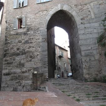 Located on Via Bontempi leading to Via del Roscetto, the arch maintains its function as a passage through the Etruscan walls of Perugia.