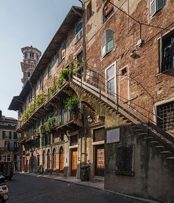 Case Mazzanti, Renaissance architectural complex in Piazza delle Erbe, Verona, Italy.