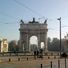 Porta Sempione is a neoclassical triumphal arch at the entrance to Sempione Park in Milan, decorated with Corinthian columns, statues, and elaborate bas-reliefs. The archway now forms a monumental frame for the view of the tree-lined avenue stretching through the park beyond.