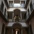 The building incorporates multiple levels of carved stone balconies and window frames that create distinct patterns of light and shadow throughout the day.