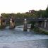 The Ponte Palatino extends 155 meters across the Tiber River, featuring iron frames supported by four large pillars covered with travertine stone blocks.