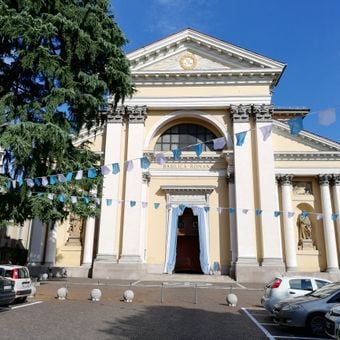 The neoclassical facade, added after the Napoleonic wars in 1810, resulted from the patronage of Marchese Maria Lelia Talenti and Maria Selvagina Doria.