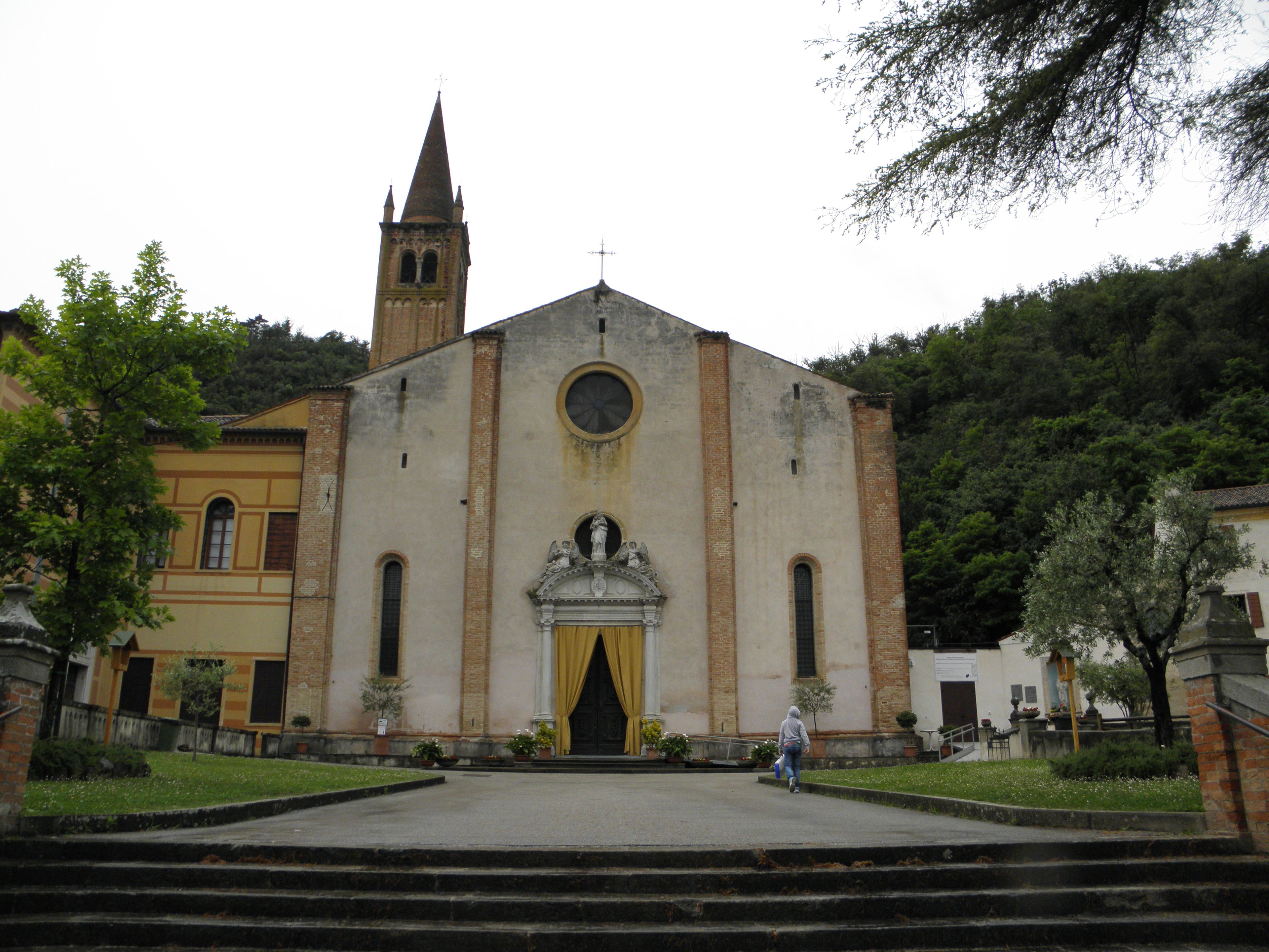The Beata Vergine della Salute sanctuary stands at the base of Monteortone hill, featuring frescoes by Jacopo da Montagnana and a Crucifixion by Palma il Giovane.