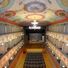 The ceiling features decorative floral patterns and portraits of notable figures including Rossini, Verdi, Alfieri, Bellini, Goldoni, and Metastasio.