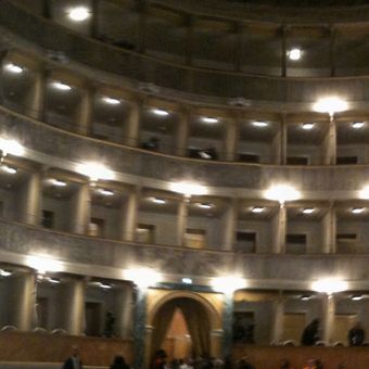 Architect Leopoldo Pollack completed this theater in 1808, establishing it as a counterpart to the Teatro Riccardi in Bergamo's lower district.