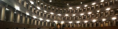 The Teatro Sociale features three tiers of boxes and a gallery level, with an oval-shaped layout that differs from traditional horseshoe designs.