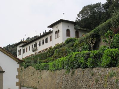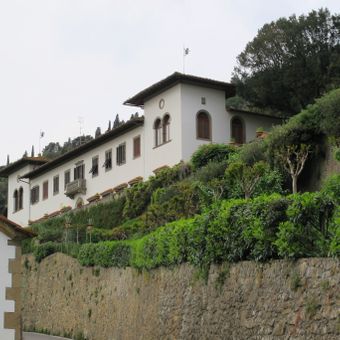 Villa Il Palagio di Maiano stands on a hilltop above the village of Maiano, featuring long terraces supported by fortified walls overlooking Florence.