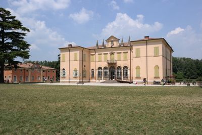 Two mosaic-decorated pavilions stand in the northern lawn, formerly used by the Buri family for summer events.