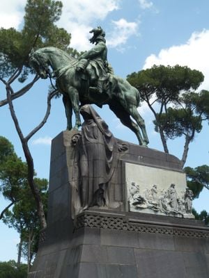 The monument represents a period of Italian monarchy through neoclassical design elements that emphasize the connection between leadership and military strength.