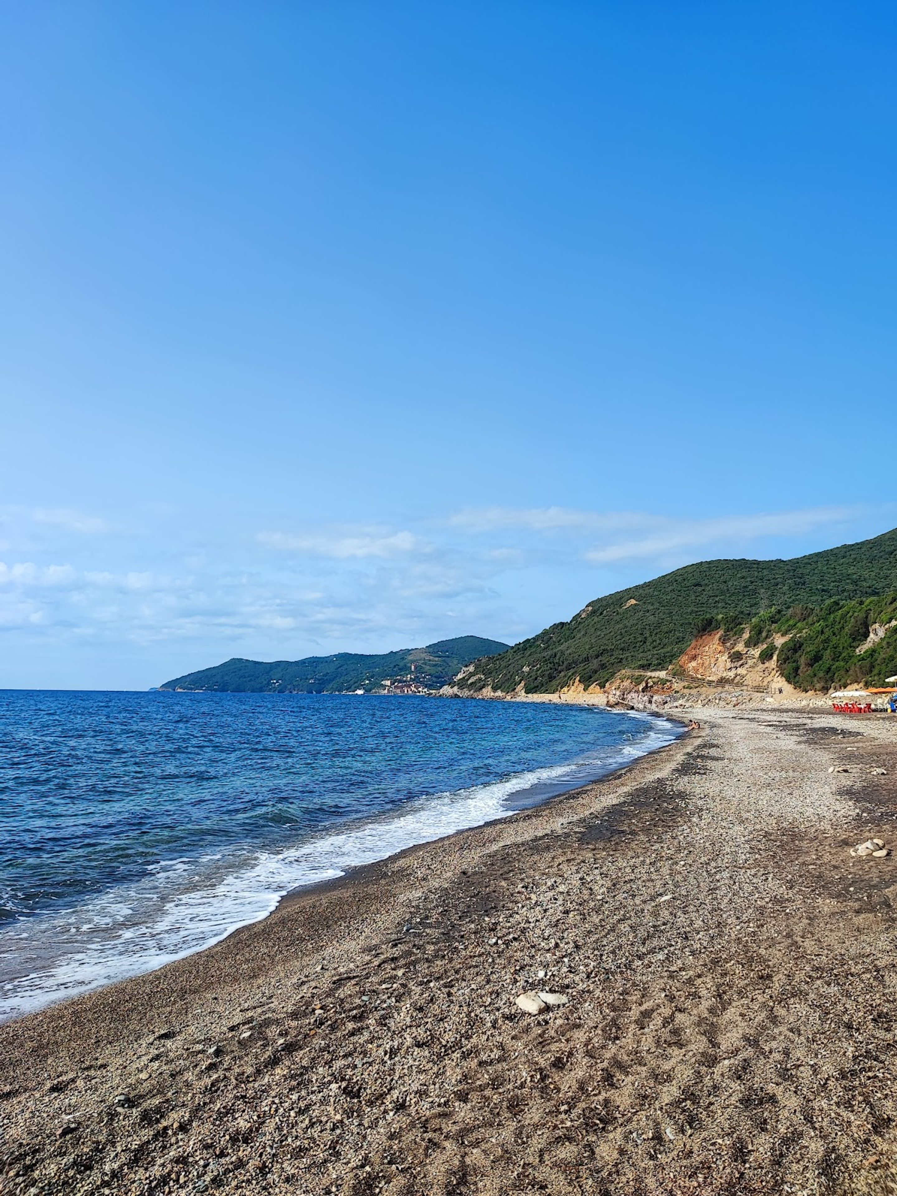 The beach stands near the former Rio Albano mine, featuring traces of iron mining that influenced the mineral composition of its sand.
