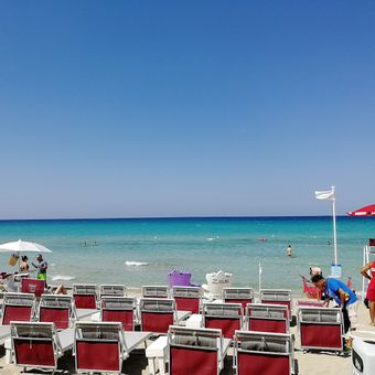Zeus Beach, Sandy beach in Baia Verde, Gallipoli, Italy