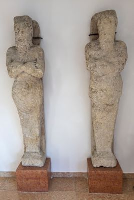 Caryatids from the Public Library, statue in Grezzana, Italy