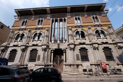 The Palazzo Andreani stands as a three-story structure featuring ornamental decorations that characterize the Art Nouveau movement of early twentieth-century Italian architecture.
