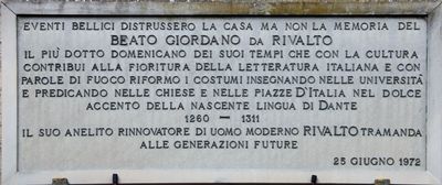 Commemorative plaque to the house of Giordano da Pisa in Rivalto, targa commemorativa di Chianni