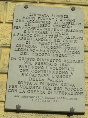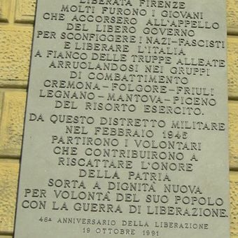 Plaque to the volunteers of the Liberation, plaque in Florence dedicated to the young volunteers who left to defeat the Nazi-fascists and liberate Italy