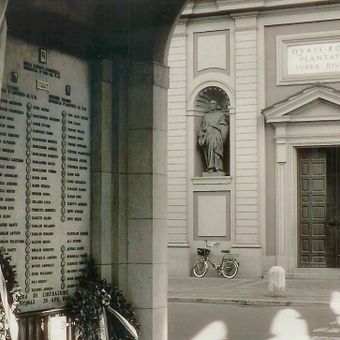 Lapide ai Caduti Partigiani della Guerra di Liberazione, lapide commemorativa di Castelfranco Emilia, alla chiesa di Santa Maria Assunta