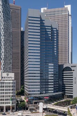 The building represents Japanese architectural precision through its structural design, contributing to Nishi-Shinjuku's position as a central business district.