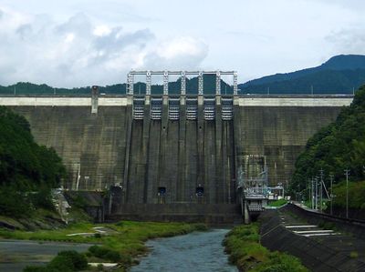 The reservoir capacity equals 750,000 standard swimming pools, making it the largest water storage facility on Shikoku Island.