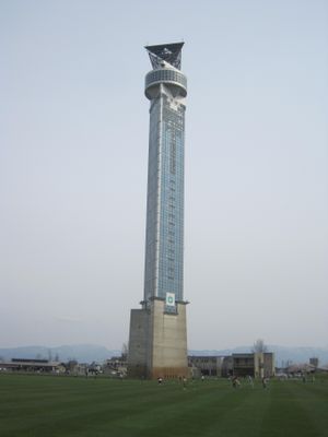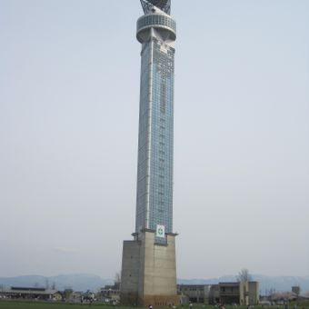 The structure stands at an intersection where two highways meet at right angles, one of only two such configurations in Japan.