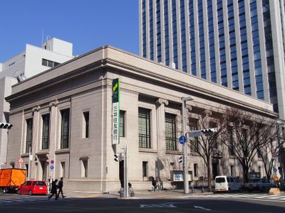 The structure incorporates Ionic architectural elements and traditional Japanese banking design principles, reflecting the fusion of Eastern and Western architectural styles.