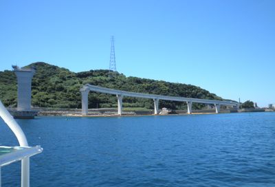 Iojima Bridge is a modern road crossing in Nagasaki that spans the water to link the city with Iojima Island. The structure carries both vehicles and pedestrians across the strait separating the island from the mainland.