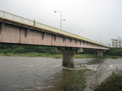 The bridge stands over the Tone River, which bears the name Bandō Tarō, signifying its status as the principal waterway of the Kantō region.